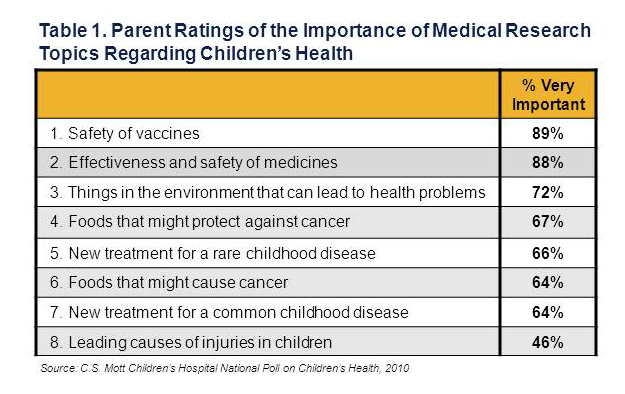 Parent views on medical research: safety of vaccines & medicines top priorities