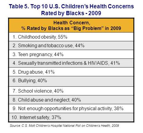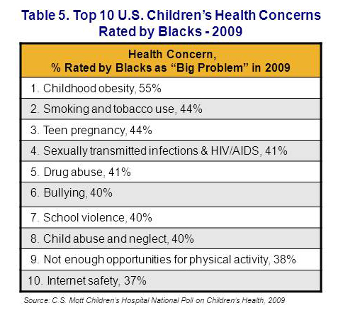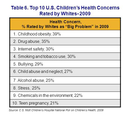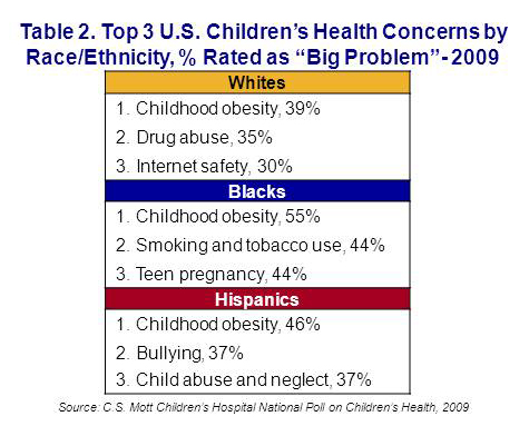 - Beyond obesity, Hispanics, blacks, and whites disagree on top child health problems.