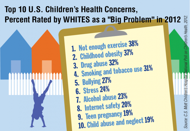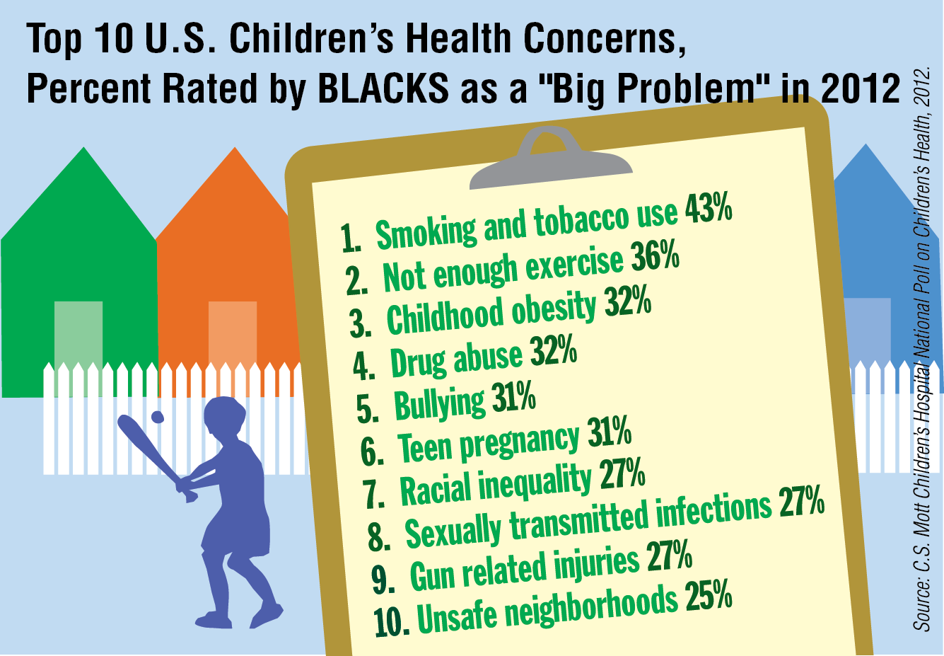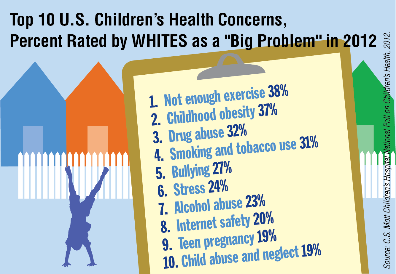 - Top child health concerns differ for black and Hispanic adults compared with white adults.