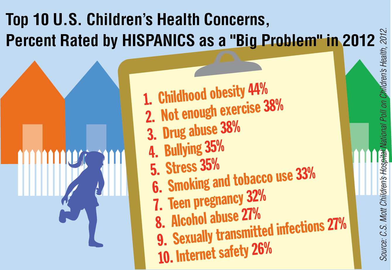 Hispanic adults differed from blacks and whites in their comparatively high level of concern about childhood obesity, drug abuse, bullying, stress and teen pregnancy.