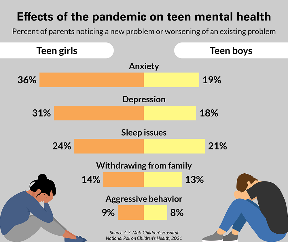 Freed GL, Singer DC, Gebremariam A, Schultz SL, Clark SJ. How the pandemic has impacted teen mental health. C.S. Mott Children's Hospital National Poll on Children's Health, University of Michigan. Vol 38, Issue 2, March 2021. Available at: https://mottpoll.org/reports/how-pandemic-has-impacted-teen-mental-health.